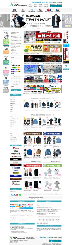 デザインHTMLコーディングPCサイト+SPサイト作業服、作業着、事務服を販売されています「SSSユニフォーム様」のホームページです。